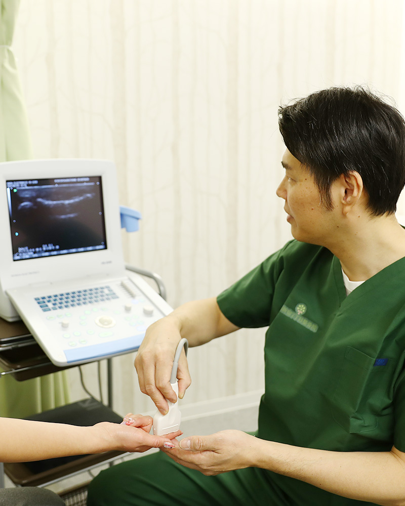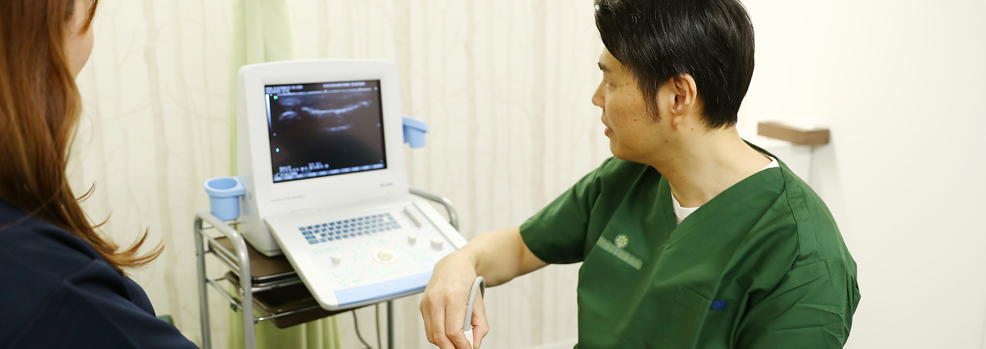 当院ではエコー検査機器を使い損傷部を画像で確認して施術に活用していきます。